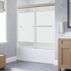 Portwood 52 to 60 in. W x 58 in. H Semi-Frameless Sliding Bathtub Door in Nickel with 1/4 in
