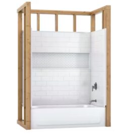 NexTile 60 in. W x 30 in. D x 60 in. H Four-Piece Direct-to-Stud Composite Alcove Tub Surround in White