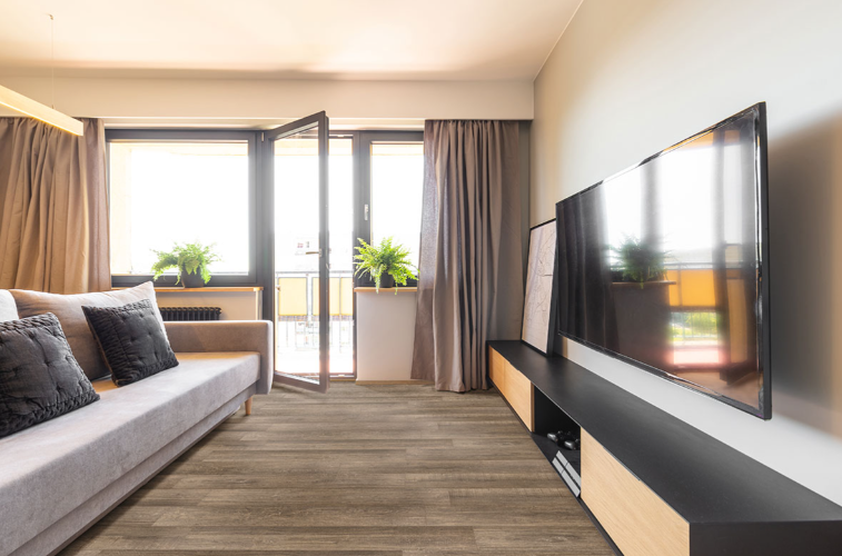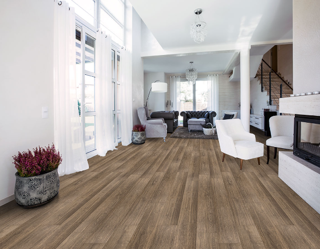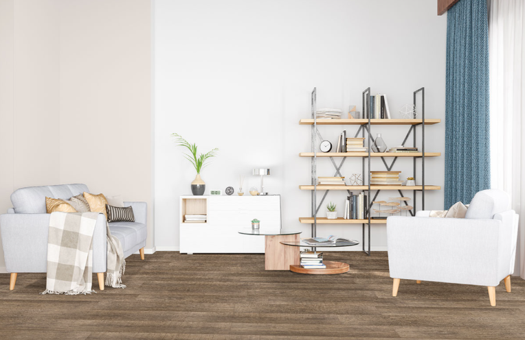 Achieve refinement with Abingdale® Luxury Vinyl Planks offering dark chocolate brown tones with subtle grains and knots, creating the gorgeous look of aged walnut hardwood. This stunning 7×48 wood-look LVP is 100% waterproof and protected with a 20 mil commercial-grade version of CrystaLux Ultra™, a protection layer that provides durability and longevity, protecting against everyday wear. It also comes with a custom-designed beveled edge, an innovative pre-attached backing to ensure supreme comfort underfoot and an easy-install locking system. This rigid core flooring features “no acclimation” technology that enables buy today, install today convenience. In the kitchen, living area, bathroom, basement, and beyond, there’s no easier way to create luxurious, affordable floors in residential or commercial settings. Full range of vinyl flooring trims are available to give your project a professional finish. Andover planks feature a lifetime limited residential, 15-year limited light commercial, and 10-year limited commercial warranty.