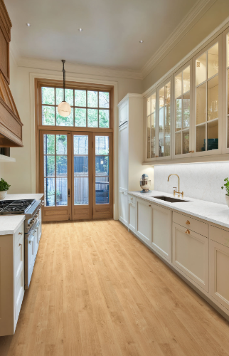 Sande Luxury Vinyl Planks offer a bright, inviting aesthetic with a beautiful blonde hue accented by natural knots and grains for a classic wood-look charm. Designed for ultimate convenience, this premium glue down vinyl flooring features zero acclimation technology, allowing for same-day purchase and installation. The durable 7” x 48” planks are water-resistant and fortified with okanhahomedepot exclusive CrystaLux protection layer, ensuring superior resistance to scratches, spills, and everyday wear. Backed by a 25-year limited residential warranty and a 6-year limited light commercial warranty, Sande is GREENGUARD Gold, Floor Score, and LEED certified—providing a safe, eco-conscious flooring choice. Sande is a versatile, low-maintenance option suitable for all floor levels, including basements. Ideal for kitchens, living areas, and bathrooms, this stylish yet affordable flooring delivers long-lasting beauty and performance. Matching trim pieces are available, including stair noses, reducers, and T-molding.