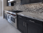 Akaya Nero Interlocking Glass Tile features a striking combination of cool grays, charcoals, blacks, and touches with icy pearl tones. Create show-stopping installations using them as backsplash tile, for showers, fireplace surrounds, and a wide range of other architectural details. Durable and easy to clean, these tiles will create a distinctive design element in any space they are installed. They coordinate beautifully with a wide range of floor tiles and natural stone slabs in our inventory.