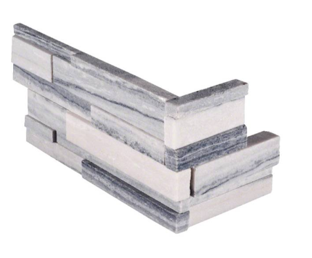Alaska Gray 3D Stacked Stone has an elegant and contemporary feel. The natural white and gray veins of this marble is sophisticated and refined. This stacked stone is perfect for a wide array of exterior, and interior, design projects including fountains, backsplashes, fireplace surrounds, and much more. Coordinating corner pieces are also available to make installation easy.