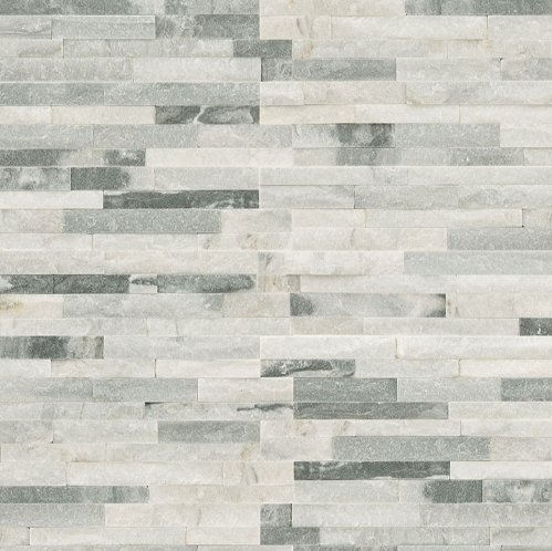 Alaska Gray Mini Stacked Stone Panels feature a palette of trendy gray tones which evoke a sense of sophistication befitting any décor. A petite version of our traditional stacked stone panels, these 4.5×16 split face marble panels are perfectly sized for easy backsplash installation. This backsplash tile is also a wonderful choice for features walls, accent borders, niches—or nearly any vertical space where a touch of natural beauty is welcomed, even outdoors. MSI’s mini stacked stone panels are freeze-thaw resistant and suitable for water features. Featuring stepped cut ends, they fit together quickly and easily for seamless alignment, and no grout is required. Giving your space a fresh new look has never been easier.