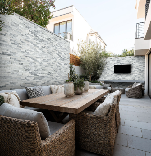 Alaska Gray Stacked Stone panels are crafted from fine split face marble. The soft gray tones are complemented by the natural variance and veining of marble. Use to create beautiful design features including accent walls, fireplace walls, and for exterior projects including cladding of structures and architectural elements including support beams and retaining walls. Matching corners are available to finish off projects.