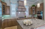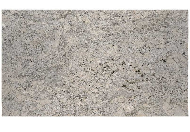 Alpine Valley granite countertops are slabs of dazzling natural stone from India with their warm white backgrounds and scattered beige, charcoal, and black accents. The high-variation counters come with a polished finish and can create a fabulous tone-on-tone look installed over medium wood cabinetry or standout style atop lighter cabinetry.