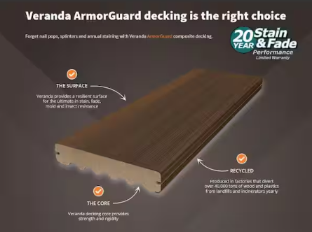 Fiberon ArmorGuard PE composite decking is found exclusively at The Home Depot. It provides an authentic wood look for your outdoor living space without the upkeep, allowing you to spend less time worrying about maintenance and more time enjoying beautiful backyard views. Choose from 3 distinct, multi-tonal colors that pair well with classic, subtle neutrals or bold pops of color.