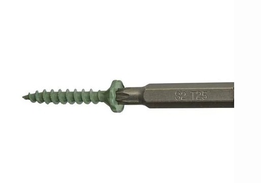 Star drive with T-25 bit for simple one-handed use and no cam-outs