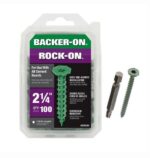 2-1/4 in. cement board screws (100 pack) are top-tier fasteners for securing cement boards. The unique serrated head design allows for flush seating at any angle, ensuring a smooth surface for tile installation. The star drive recess, paired with the bit, facilitates easy one-handed installation and prevents cam outs. The high-quality corrosion-resistant finish stops rust from seeping into grout, making these screws ideal for high-moisture areas like bathrooms and kitchens.
