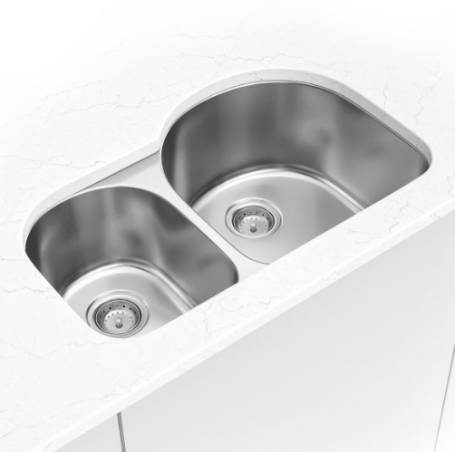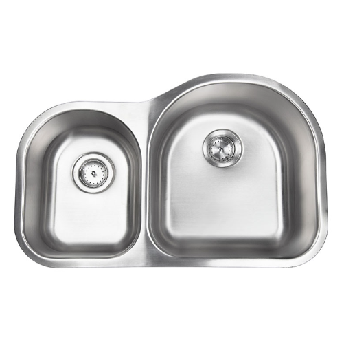 This contemporary double bowl undermount sink is constructed with 18-gauge thickness stainless steel for reliable durability. With one smaller and one larger basin (40/60), it accommodates your every culinary need, handling large cookware such as stockpots and baking sheets without any trouble. An ideal choice for busy homes and light commercial environments, this easy to clean sink offers sound shielding pads as well as a beautiful brushed satin finish that helps minimize small scratches. Long lasting quality and elegance come together in this popular double bowl stainless steel sink. Backed by a limited lifetime warranty with strainer included and stainless-steel grid available.