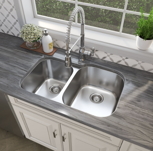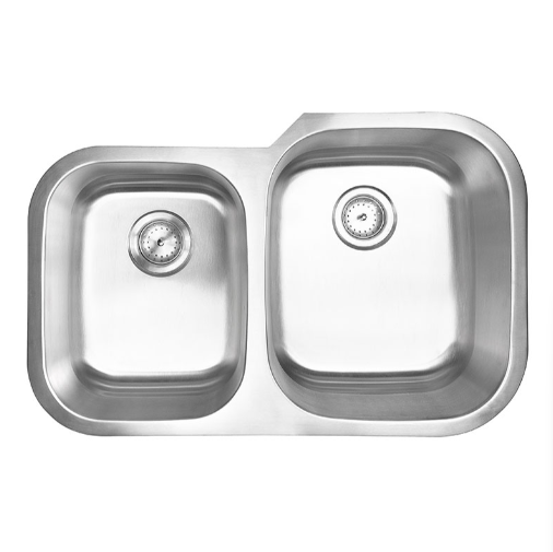 This modern double bowl undermount sink with rounded corners is constructed with 18-gauge stainless steel for reliable durability. With one smaller and one larger basin (40/60), this sink accommodates your large cookware such as stockpots and baking sheets while keeping everyday glasses and dishes separate and safe. An ideal choice for busy homes and light commercial environments, this easy to clean sink offers innovative sound shielding pads as well as a beautiful brushed satin finish that helps minimize small scratches. Long lasting quality and elegance come together in this popular double bowl stainless steel sink. Backed by a limited lifetime warranty with strainer included and stainless-steel grid available.