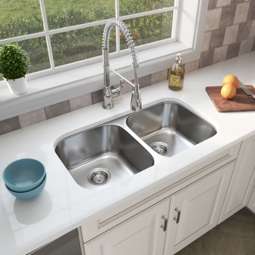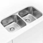 This classic double bowl undermount sink is constructed with 18-gauge thickness stainless steel for reliable durability. With two equally sized 8” deep bowls and innovative sound shielding pads, it’s not only elegant but practical too. An ideal choice for busy homes and light commercial environments, this large easy to clean sink offers a beautiful brushed satin finish that helps minimize small scratches for enduring beauty. Long lasting quality and elegance come together in this popular double bowl stainless steel sink. Backed by a limited lifetime warranty with strainer included and stainless-steel grid available.