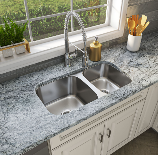 Upgrade your kitchen with our versatile 32″ x 18″ Double Bowl Cutout Sink, featuring a unique 60/40 split. The larger basin, measuring 16″ wide and 9″ deep, is complemented by the smaller basin, measuring 13″ wide and 7″ deep, providing flexibility for various tasks. Install it as a 60/40 or 40/60 configuration to suit your preferences. Crafted from durable 18-gauge stainless steel, this undermount sink boasts interior rounded corners, making it a stylish addition to islands, bar areas, laundries, and outdoor kitchens. The easy-to-clean surface ensures convenient maintenance, while sound shielding pads guarantee a quiet washing experience. Finished with a brushed satin finish that minimizes water spots and small scratches, this double bowl cutout sink effortlessly combines functionality and aesthetic appeal for a modern kitchen upgrade.