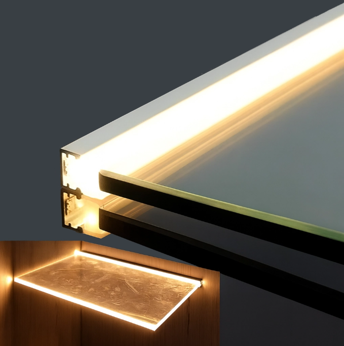 GLASS SHELF LED CHANNEL – EDGE-LIT PROFILE FOR ILLUMINATED DISPLAY SHELVING