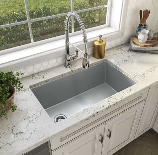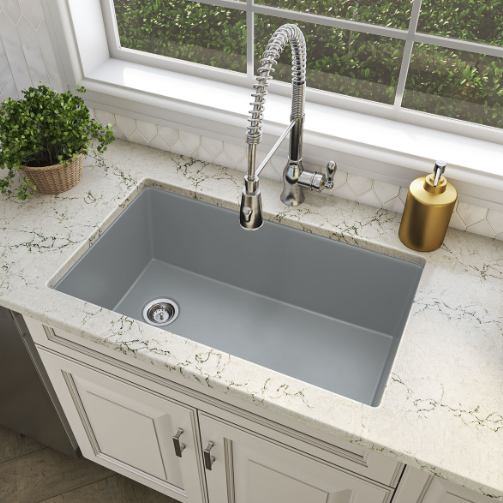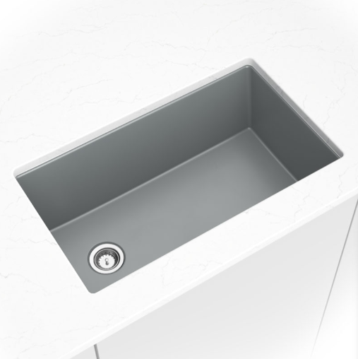This sophisticated Gray Quartz Single Bowl undermount sink showcases a flawless rectangular design and offers scratch, stain, and germ resistance. Its generously sized 9″ deep basin effortlessly accommodates large cookware and stacks of dishes. Designed for bustling households and light commercial environments, this quartz sink demonstrates exceptional heat resistance. Its solid construction guarantees superior sound absorption, while its matte finish effectively minimizes water spots. Moreover, this sink features a UV protected surface, ensuring long-lasting resistance against fading. The perfect combination of enduring quality and elegant aesthetics makes this single bowl quartz sink highly coveted. Furthermore, it is supported by a limited lifetime warranty, providing added peace of mind.