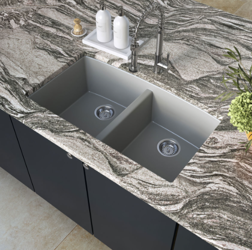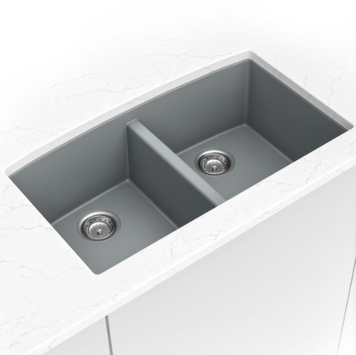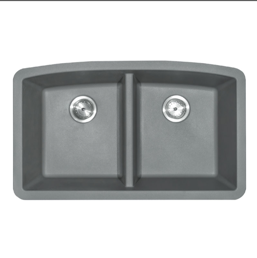 This gorgeous grey quartz double bowl undermount sink is scratch, stain, and germ resistant. With two equally sized 9” deep bowls, it’s not only elegant but practical too. An ideal choice for busy homes and light commercial environments, this quartz sink is designed to be heat resistant up to 535 degrees Fahrenheit and its thick construction provides superior sound absorption. Its upscale velvety smooth matte finish helps minimize water spots and it features a UV protected surface to help resist fading. Long lasting quality and beauty come together in this popular double bowl quartz sink designed. Backed by a limited lifetime warranty.