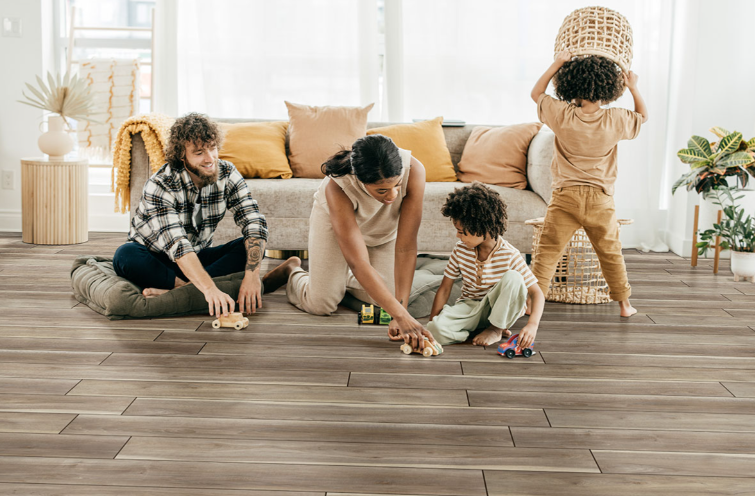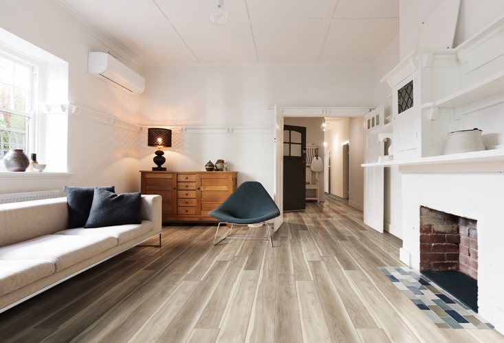 Highcliffe Greige® Luxury Vinyl Planks feature a natural blend of grays and creamy beige with subtle knots and grains for an authentic wood look. This understated 7×48 wood-look LVP is 100% waterproof and protected with a 20 mil commercial-grade version of CrystaLux Ultra™, a protection layer that provides durability and longevity, protecting against everyday wear. It also comes with a custom-designed beveled edge, an innovative pre-attached backing to ensure supreme comfort underfoot and an easy-install locking system. This rigid core flooring features “no acclimation” technology that enables buy today, install today convenience. In the kitchen, living area, bathroom, basement and beyond, there’s no easier way to create luxurious, affordable floors in residential or commercial settings. A full range of vinyl flooring trims is available to give your project a professional finish. Andover products come with a lifetime limited residential, 15-year limited light commercial, and 10-year limited commercial warranty.