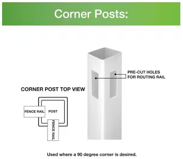 - Pre-routed post used to connect fence linden panels in a corner