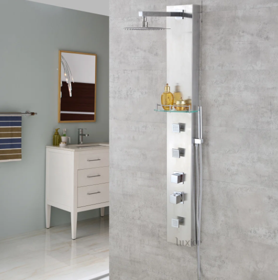Home Bathroom Shower Panels Multi-Function Thermostatic 55″ Rainfall Shower Panel with Adjustable Shower Head