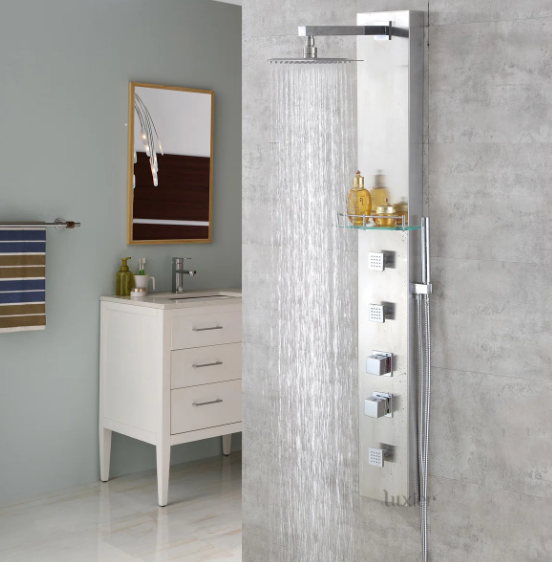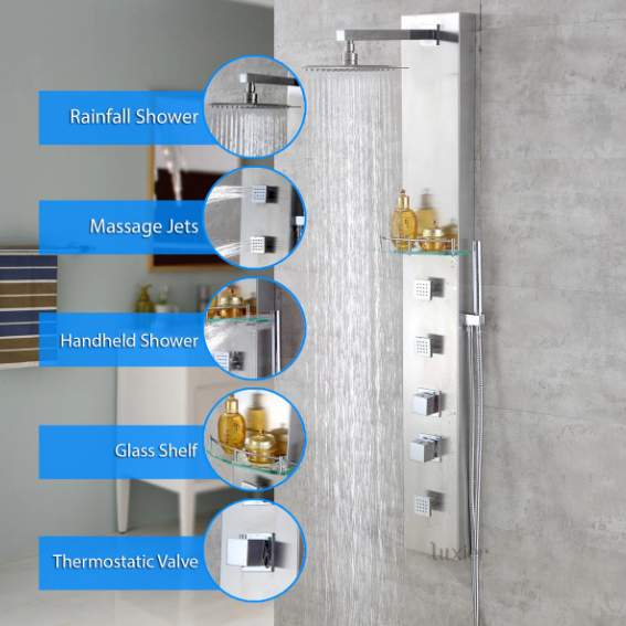 Multi-Function Thermostatic 55″ Rainfall Shower Panel with Adjustable Shower Head
