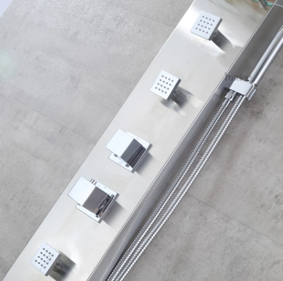 Introducing the SP21 shower panel, a luxury stainless steel shower panel with 8 in. rainfall shower head, 3 x 16 nozzles adjustable angle massage jets, and hand shower. Equipped with thermostatic control to minimize the chance of scald. UPC, cUPC certified. Brought to you by Luxier, the premium brand in European-designed bathroom and kitchen hardware.