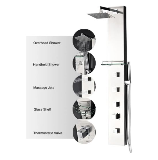 Temperature Control Tower 63″ Shower Panel with Fixed Shower Head
