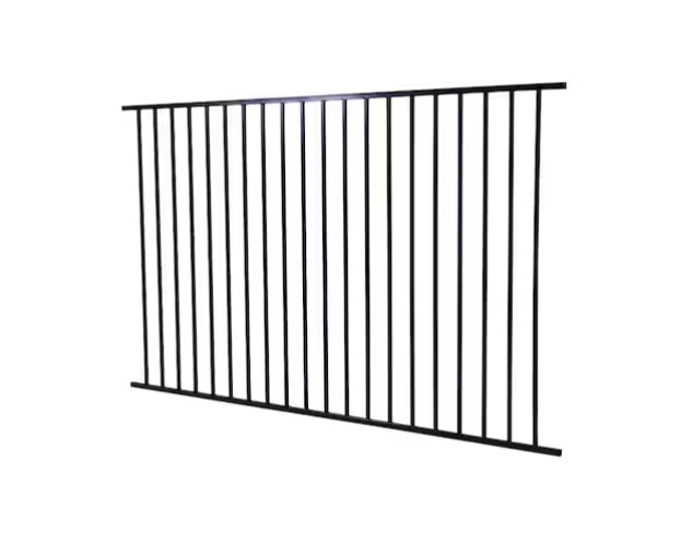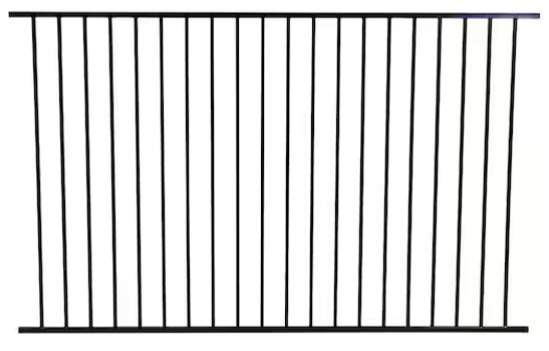 With the 5 ft. x 8 ft. Galvanized Steel 2-Rail Flat-top Fence Panel you can build a strong, secure and beautiful enclosure for your yard or garden. Alternatively, you can use this durable steel panel to define a boundary. The installed panel is 5 ft. high and has pickets that are evenly spaced 4 in. Apart, allowing you privacy while maintaining an open view. The black color adds a stylish upscale appearance to most yards.