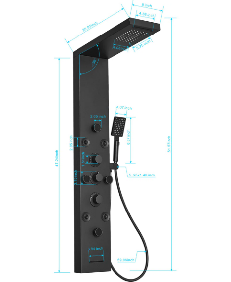 Shower Head 8'' W Panel 51.57'' H