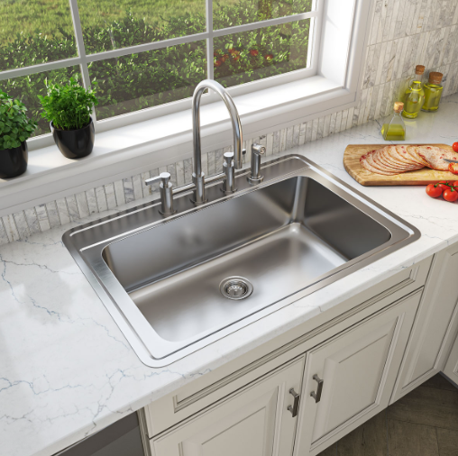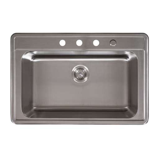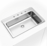 Revitalize your kitchen space with our elegant 33″ x 22″ Single Bowl Sink, expertly crafted from durable 18-gauge stainless steel. Designed with an elongated form for a modern touch, this overmount sink is perfect for islands, bar areas, laundries, and outdoor kitchens. The 9″ deep basin provides ample room for various tasks, and the interior rounded corners add a sophisticated touch. Experience convenience with an easy-to-clean surface, while the inclusion of sound shielding pads ensures a tranquil washing experience. The brushed satin finish not only enhances its contemporary aesthetic but also effectively minimizes the visibility of water spots and minor scratches, making this single bowl sink a stylish and functional addition to your kitchen.