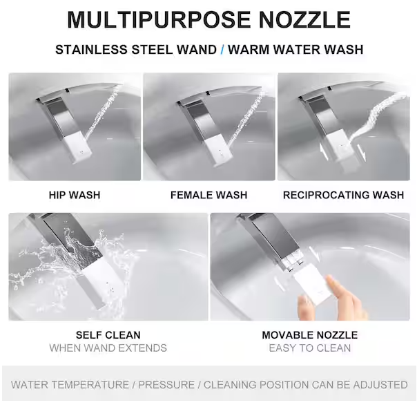 - Bidet Toilet Combo: The bathroom toilet built-in bidet seat, and the washing position, water temperature, and water pressure can all be adjusted. Choose the wash that suits you