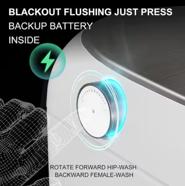 - Emergency battery back-up system so you can use your toilet even when power is out (battery included)