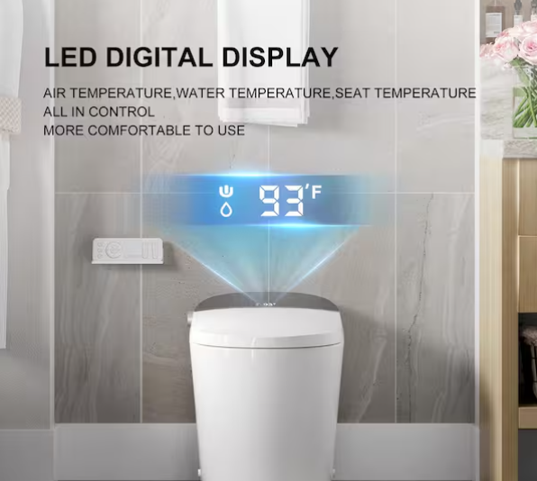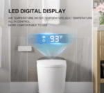 - Smart Toilet for Bathroom: Water temperature, seat temperature, and drying temperature are visible. The night light can navigate you in the dark
