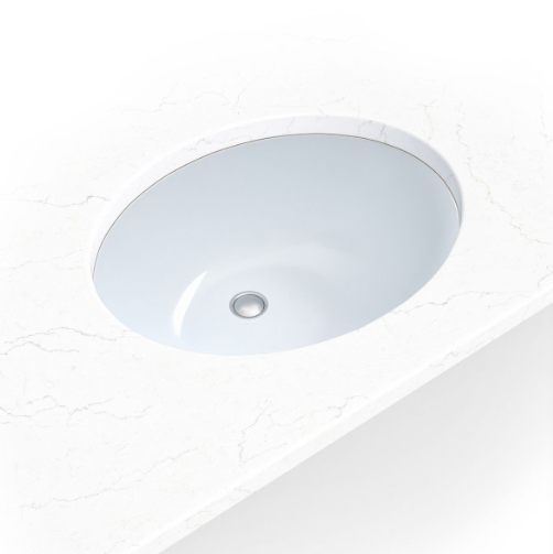 Oval in shape, this beautiful white 19 ½” undermount vanity sink is crafted of durable porcelain to meet the demands of everyday use. Its neutral shade and classic shape work well with a wide variety of colors and decorative schemes. This sink is perfectly sized for powder rooms and other small spaces and features an 8 1/8” deep basin and single overflow hole, making it as practical as it is elegant. The ideal complement to your bathroom vanity top, you can count on this sink to provide years of enduring beauty.